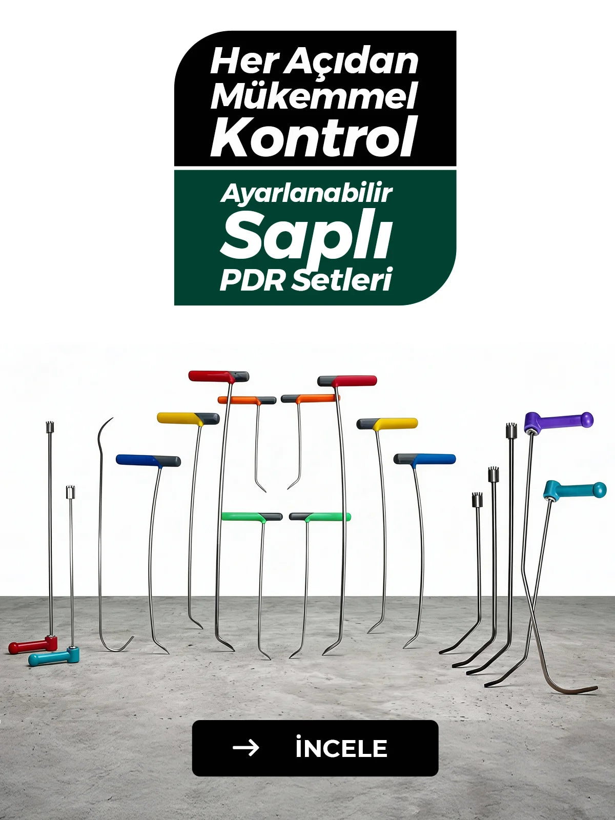 Trenova Serisi 2 Parçalı 8mm x 50cm & 70cm Kanca Formlu 360° Dönebilir PDR Çubukları