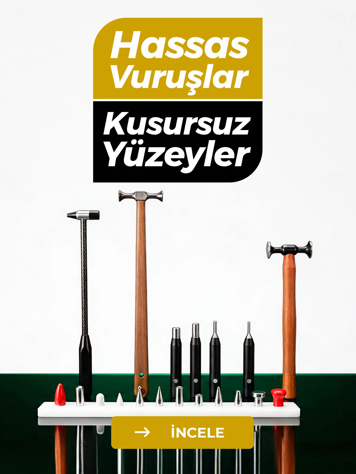 Norelia Serisi 7 Parçalı 360° Dönebilen Profesyonel PDR Çubuk Seti – Beyaz Çelik
